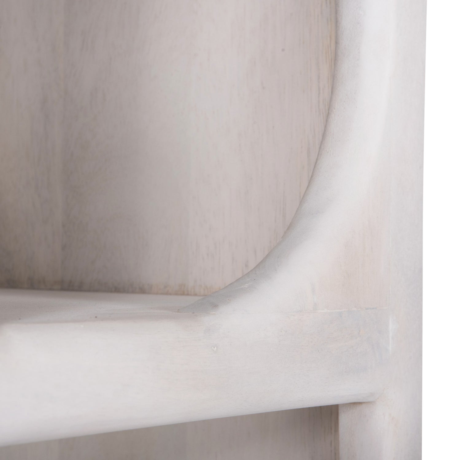 AEGEA Solid Mango Wood Tallboy is a statement of refined craftsmanship. Made entirely from premium solid mango wood in a smooth white finish, it features five open shelves of varying sizes for elegant display or storage. Perfect for adding a luxurious, natural touch to modern interiors.