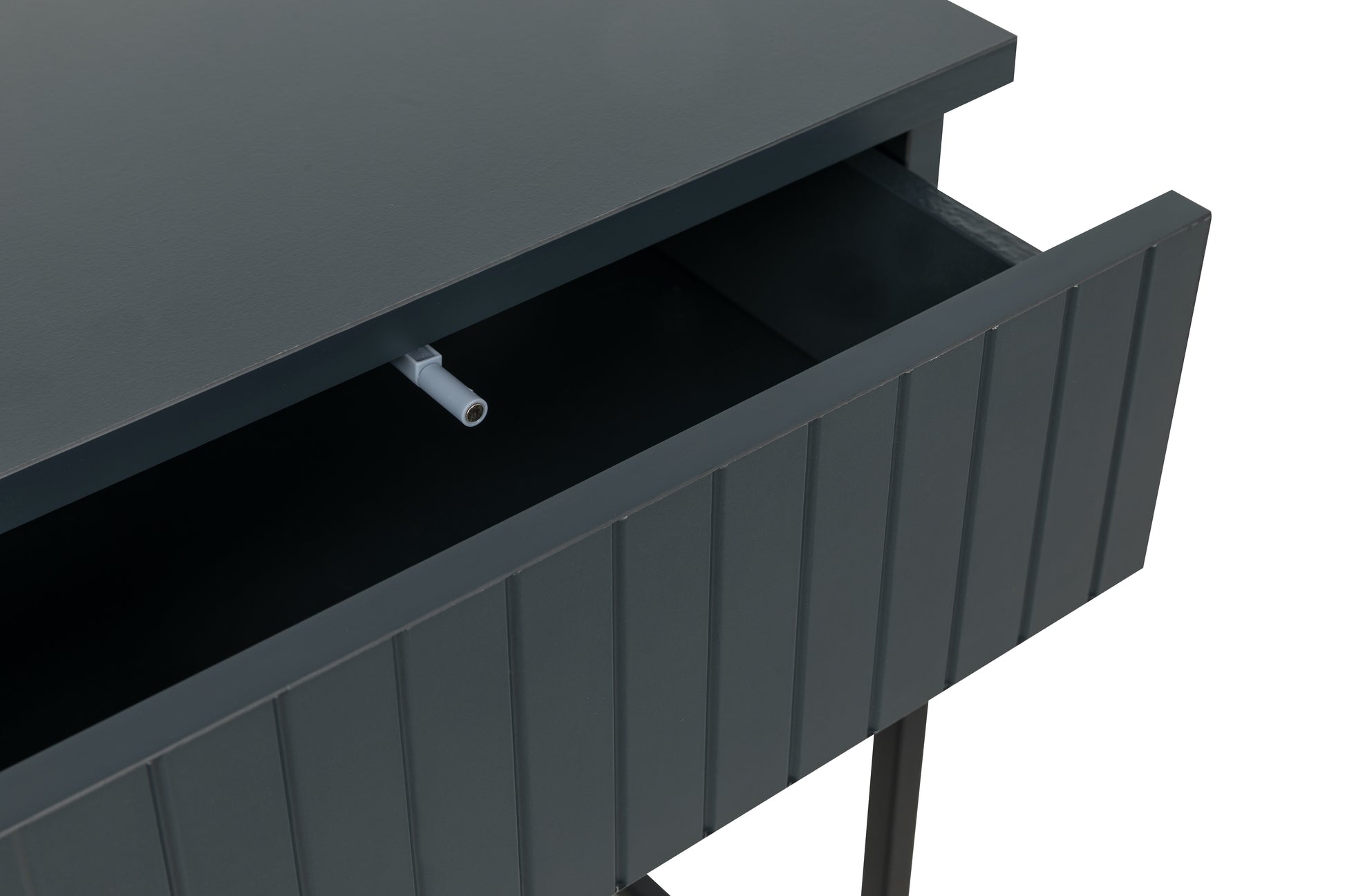 The Anna Nightstand is a perfect blend of functionality and contemporary design. Featuring a sleek matte black finish with a textured front, this nightstand brings a modern minimalist aesthetic to any bedroom. Its clean lines and open black metal frame create a lightweight and airy feel, while the spacious drawer provides ample storage for your essentials.