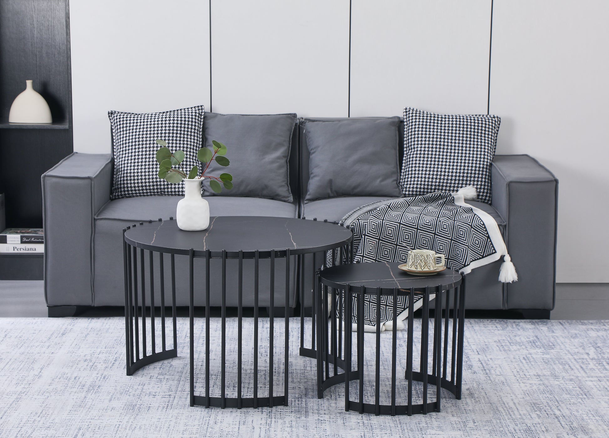 The Cage Coffee Table set is the perfect combination of sleek design and durable materials, making it a standout piece in any modern living space. Featuring a premium slate top with a smooth, matte finish and supported by high-quality black spray-coated legs, this table set adds an industrial yet elegant vibe to your home.