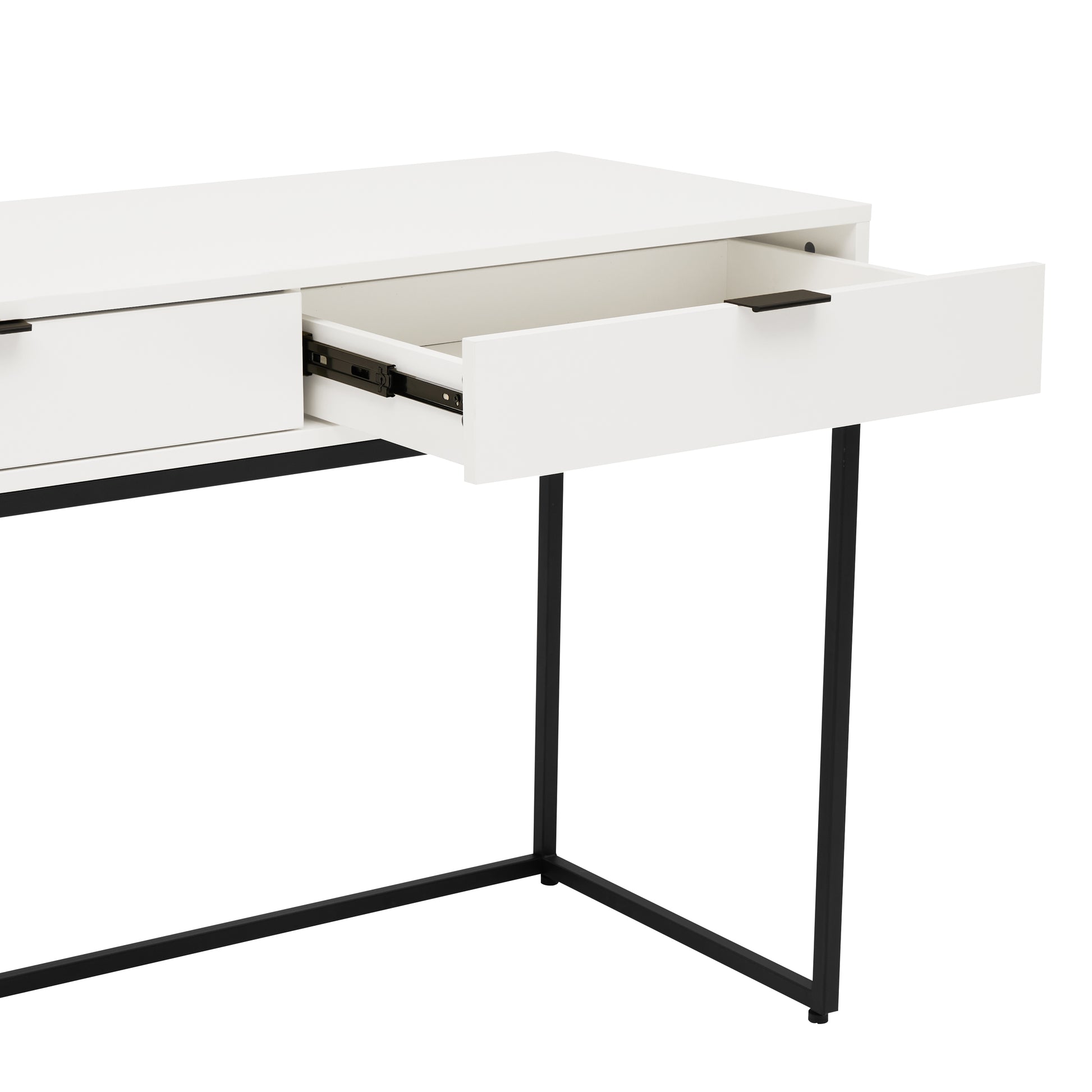 The Eclipse Desk / Dresser is the perfect blend of modern style and practicality. Featuring a clean white top with black metal legs, this versatile piece seamlessly combines elegance with functionality. Its minimalist design makes it an ideal addition to your home office, bedroom, or creative workspace.