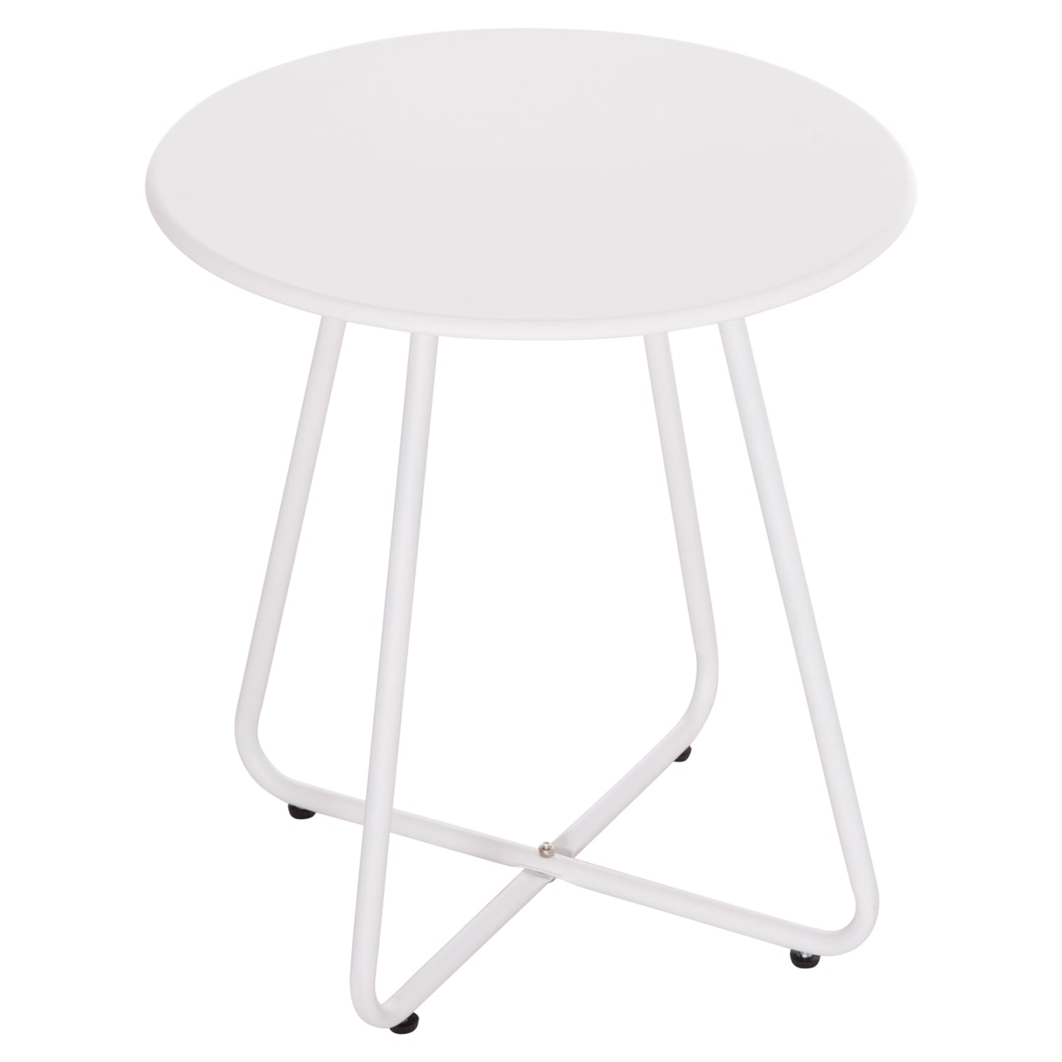 KOVA Side Table brings modern simplicity to your space. This round metal table in elegant White features a sleek cross-shaped base, making it both stylish and practical — perfect for any living room or balcony.