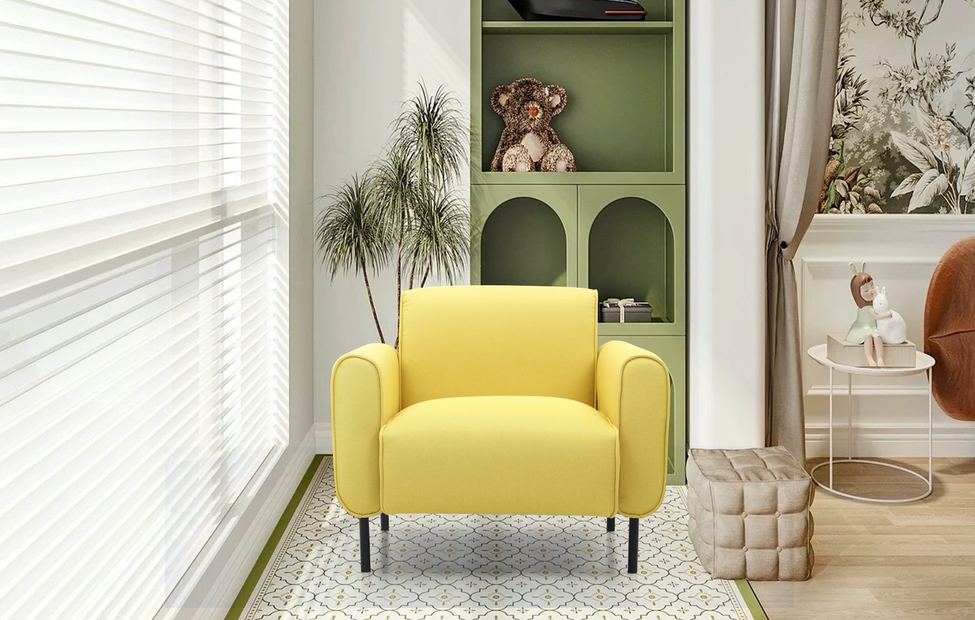 Elevate your living space with this sleek and affordable mustard yellow armchair, designed for those who appreciate modern, minimalist aesthetics without compromising on quality. Its compact yet functional design makes it an ideal choice for apartments, offices, or cozy living rooms.