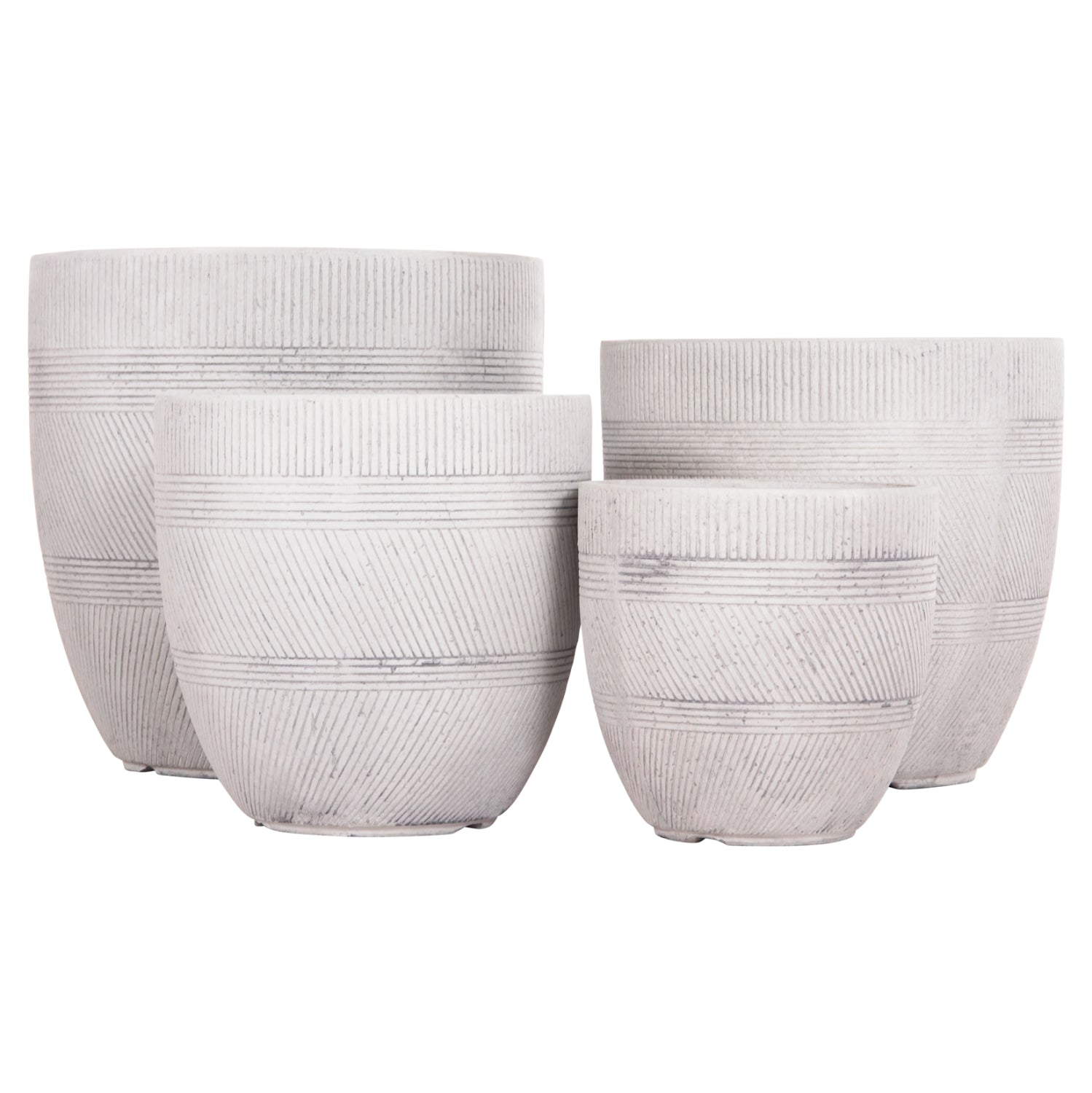 The NORD series features modern round planters made of durable FiberClay in elegant grey tones. Lightweight yet strong, these pots are perfect for gardens, patios, balconies, and other outdoor spaces.