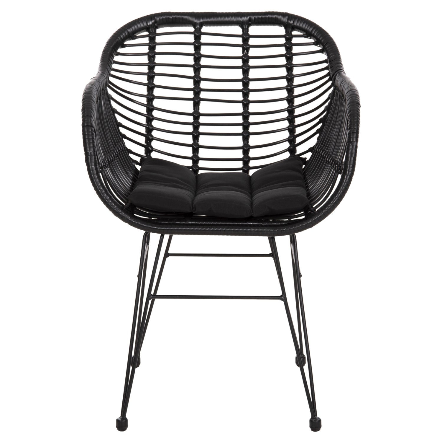 The Zenna armchair brings a modern, stylish touch to any outdoor space. Designed with a curved shape that gently hugs the body, it features durable black synthetic wicker rattan and a matching cushion for comfort. The powder-coated steel frame adds strength and stability, making it perfect for patios, balconies, cafés, and garden areas.